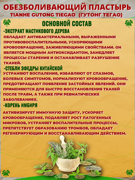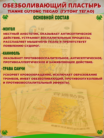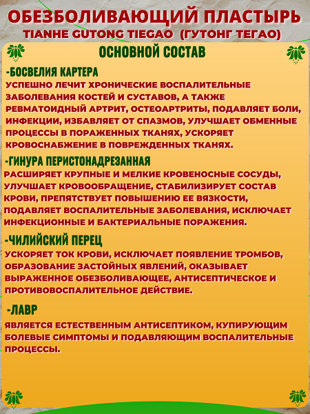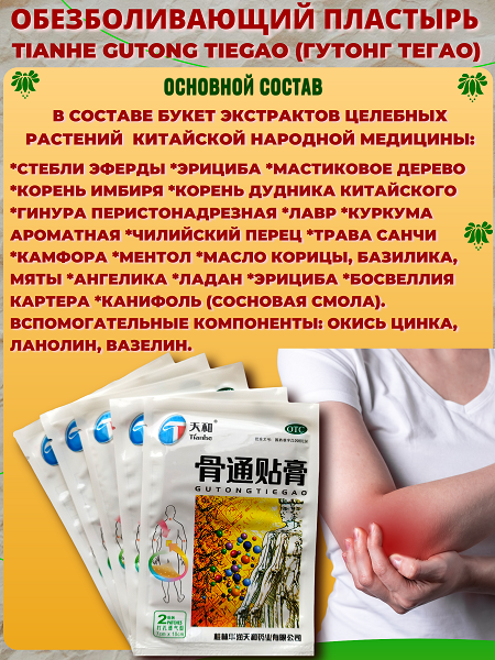 Преимущества китайского пластыря Тяньхэ Гутонг Тегао: