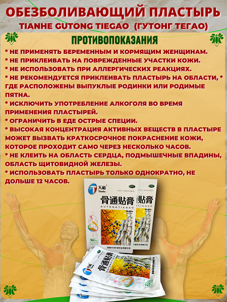 Рекомендации по применению китайского пластыря Tianhe Gutong TieGao: