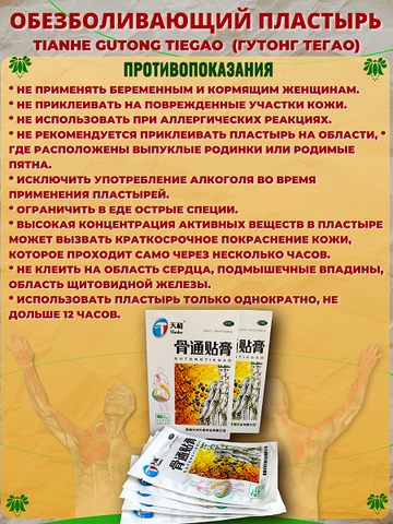 Пластырь Tianhe Gutong TieGao быстро устраняет отеки и болевые ощущения.