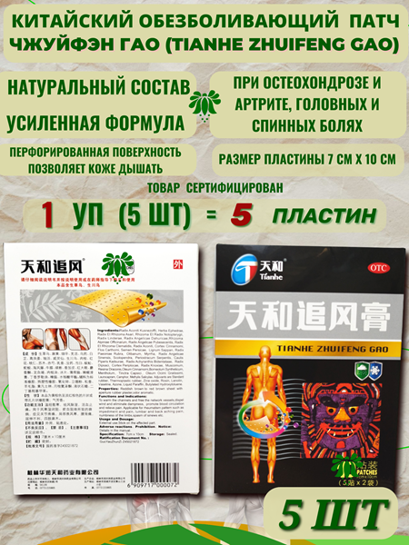 Китайский обезболивающий пластырь Tianhe Zhuifeng Gao (Тяньхэ Чжуйфэн Гао) - устраняет именно причины возникновения боли. Удобен для использования и абсолютно безопасен для здоровья.